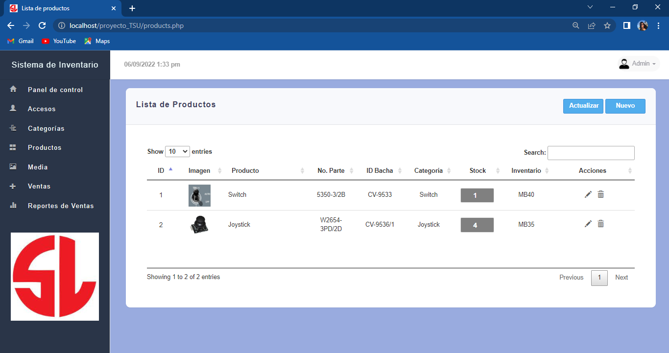 Realice prácticas en la empresa Switch Luz en Tijuna B.C. donde realice un sistema de inventario para la misma empresa cuyo objetivo fue tener un registro de todas las entradas y salidas de materiales y productos de almacen.
